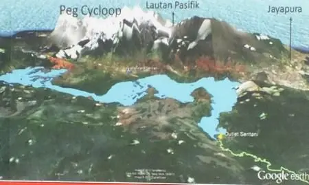 Gambar diatas ini adalah sebagian gambar wajah sentani tengah. Nampak ada kampung khabetlouw (Ifar Besar); kampung Yobhe, kampung Ifale, pulan putali, pulau Kensio dan pulau Atamali.